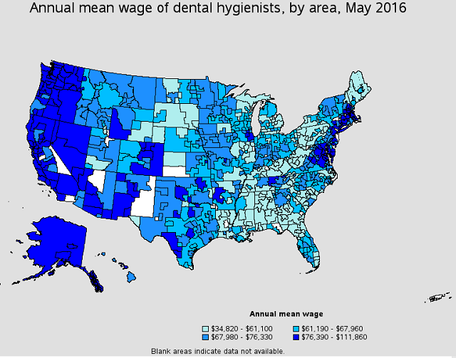 Dental Hygienist Average Wages![]() Source: Bureau of Labor Statistics, Occupational Employment Statistics, May 2016 |