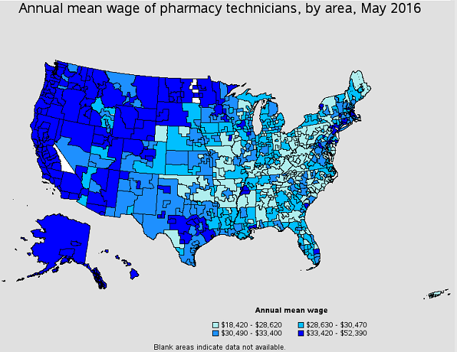 Pharmacy Technician Average Wages![]() Source: Bureau of Labor Statistics, Occupational Employment Statistics, May 2016 |