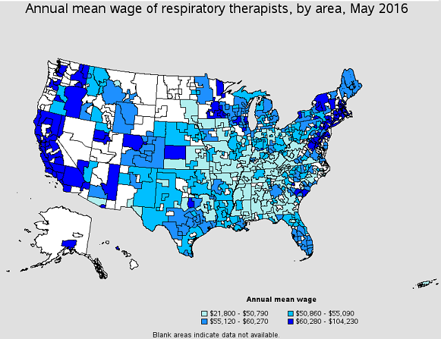 Respiratory Therapist Average Wages![]() Source: Bureau of Labor Statistics, Occupational Employment Statistics, May 2016 |